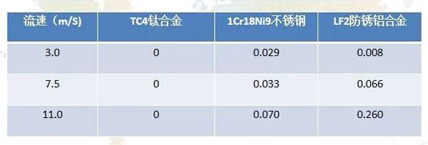 海水耐蝕性能(mm/a)數(shù)據(jù)的比較表