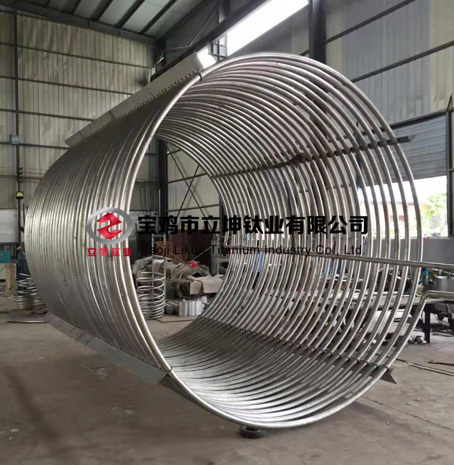 鈦冷凝器-鈦螺旋管冷凝器、鈦U型管冷凝器-采用優(yōu)質(zhì)鈦材加工而成,廣泛用于含氯離子、稀硫酸、稀鹽酸、硝酸等各種酸堿環(huán)境下。冷水機鈦冷卻管選用優(yōu)質(zhì)TA2工業(yè)純鈦制作,鈦的純度達99.7%,耐腐蝕性強,適用于低濃度酸性液體加熱與冷卻;采用自動焊接技術(shù),焊口結(jié)合緊密,牢固,不漏水。